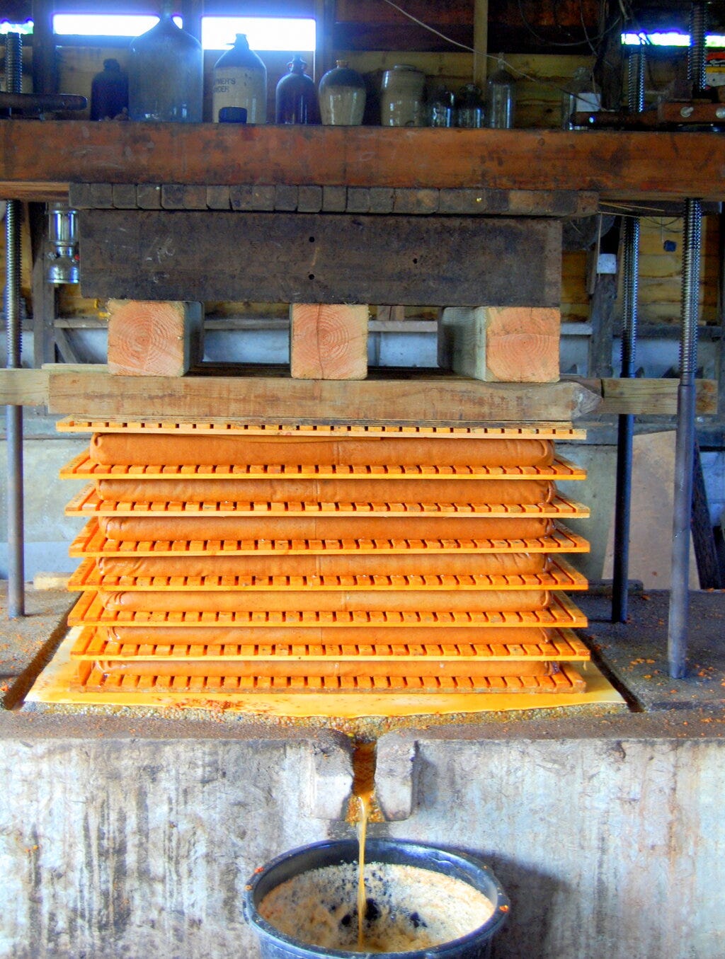 During the first stage, natural sugars from the apples ferment, which turns the apple mixture into an alcoholic cider.