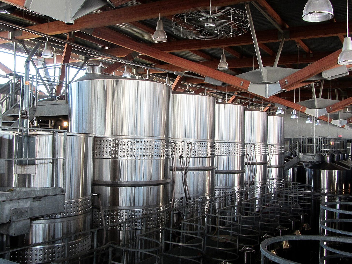 Instead of a surface biofilm, fine air bubbles are pumped through the alcoholic liquid in large stainless steel tanks.